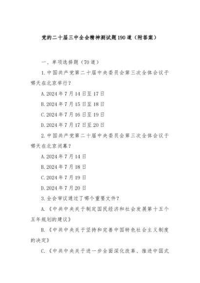 / 【七哥公文】2024年:党的二十届三中全会精神测试题190道(附答案)+更多免费公文+VX:QiGeGongWen2024