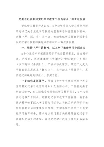 / 【七哥公文】2024年:党委书记在集团党纪学习教育工作总结会上的汇报发言+更多免费公文+VX:QiGeGongWen2024