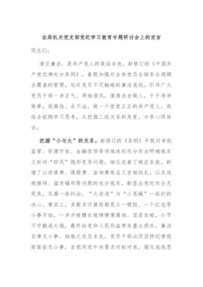 / 【七哥公文】2024年:在局机关党支部党纪学习教育专题研讨会上的发言+更多免费公文+VX:QiGeGongWen2024