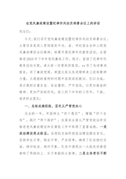 / 【七哥公文】2024年:在党风廉政建设暨纪律作风动员部署会议上的讲话+更多免费公文+VX:QiGeGongWen2024