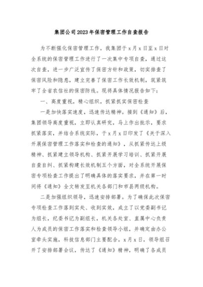 / 【七哥公文】2024年:集团公司2023年保密管理工作自查报告+更多免费公文+VX:QiGeGongWen2024