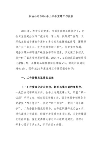 / 【七哥公文】2024年:石油公司2024年上半年党建工作报告+更多免费公文+VX:QiGeGongWen2024