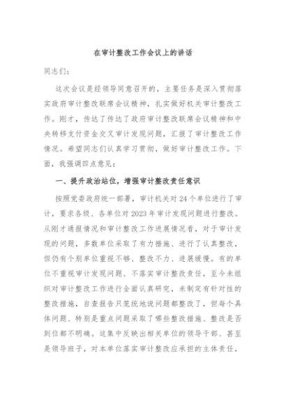 / 【七哥公文】2024年:在审计整改工作会议上的讲话+更多免费公文+VX:QiGeGongWen2024
