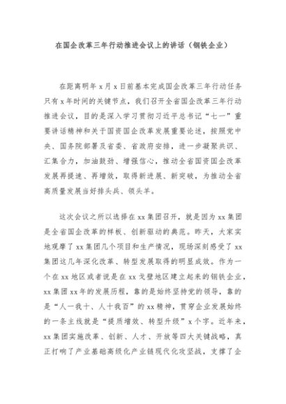 / 【七哥公文】2024年:在国企改革三年行动推进会议上的讲话(钢铁企业)+更多免费公文+VX:QiGeGongWen2024