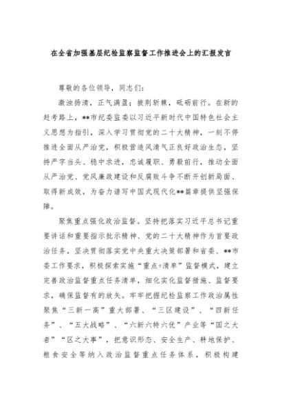 / 【七哥公文】2024年:在全省加强基层纪检监察监督工作推进会上的汇报发言+更多免费公文+VX:QiGeGongWen2024