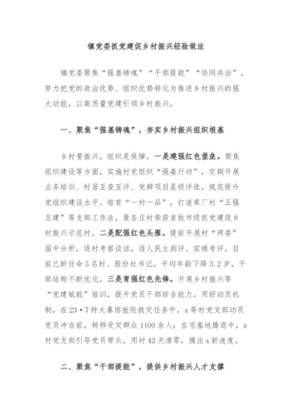 / 【七哥公文】2024年:镇党委抓党建促乡村振兴经验做法+更多免费公文+VX:QiGeGongWen2024