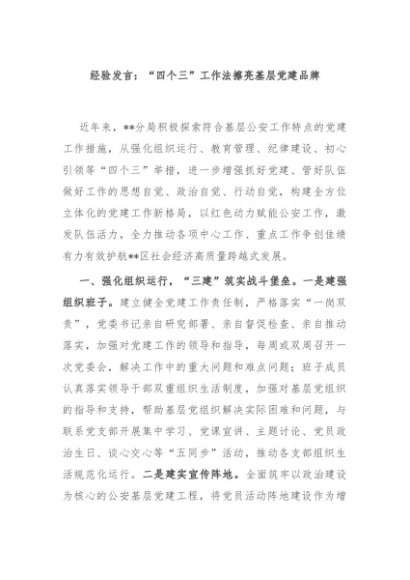 / 【七哥公文】2024年:经验发言:“四个三”工作法擦亮基层党建品牌+更多免费公文+VX:QiGeGongWen2024