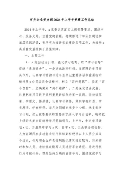 / 【七哥公文】2024年:矿井企业党支部2024年上半年党建工作总结+更多免费公文+VX:QiGeGongWen2024
