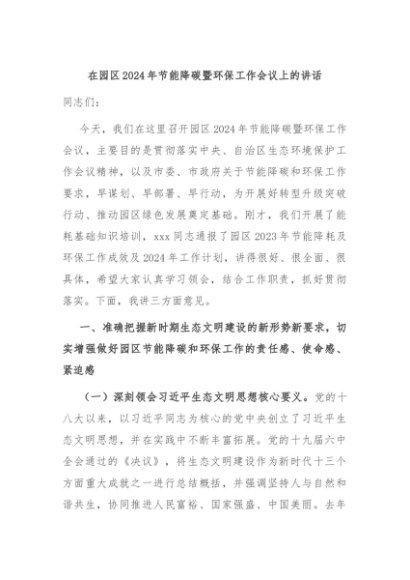 / 【七哥公文】2024年:在园区2024年节能降碳暨环保工作会议上的讲话+更多免费公文+VX:QiGeGongWen2024