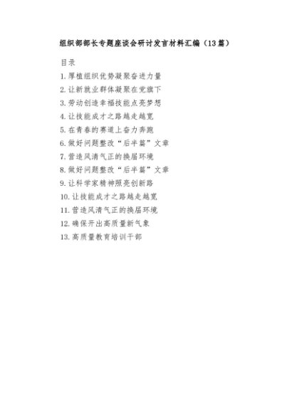 / 【七哥公文】2024年:组织部部长专题座谈会研讨发言材料汇编+更多免费公文+VX:QiGeGongWen2024