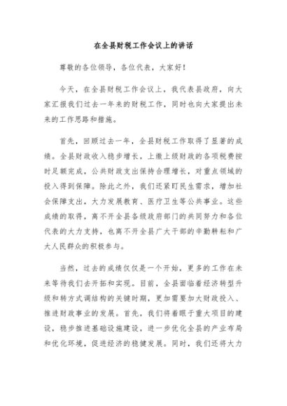 / 【七哥公文】2024年:在全县财税工作会议上的讲话+更多免费公文+VX:QiGeGongWen2024