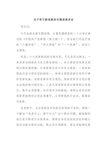 【七哥公文】2024年:关于学习新党章的专题党课发言+更多免费公文+VX:QiGeGongWen2024