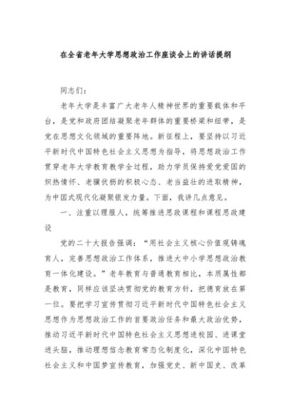 / 【七哥公文】2024年:在全省老年大学思想政治工作座谈会上的讲话提纲+更多免费公文+VX:QiGeGongWen2024
