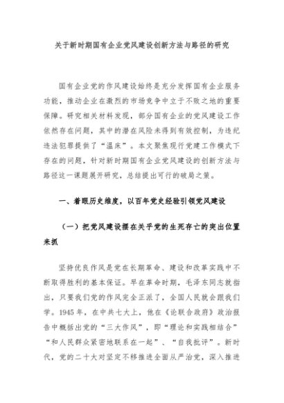 【七哥公文】2024年:关于新时期国有企业党风建设创新方法与路径的研究+更多免费公文+VX:QiGeGongWen2024