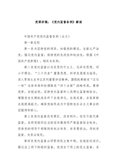 / 【七哥公文】2024年:党课讲稿:《党内监督条例》解读+更多免费公文+VX:QiGeGongWen2024