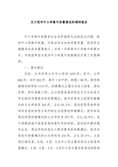 / 【七哥公文】2024年:关于我市中小学集中供餐情况的调研报告+更多免费公文+VX:QiGeGongWen2024