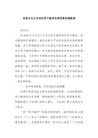 / 【七哥公文】2024年:党委书记主任党纪学习教育纪律党课讲稿提纲+更多免费公文+VX:QiGeGongWen2024