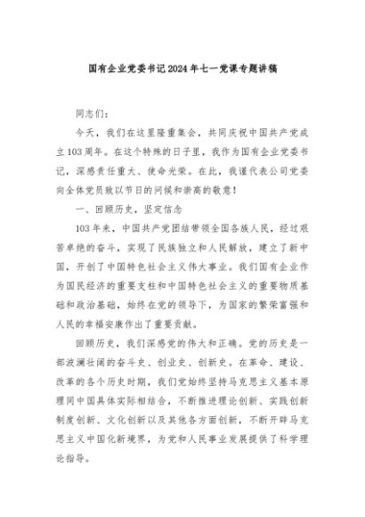 / 【七哥公文】2024年:国有企业党委书记2024年七一党课专题讲稿+更多免费公文+VX:QiGeGongWen2024