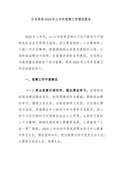 / 【七哥公文】2024年:公司党委2024年上半年党建工作情况报告+更多免费公文+VX:QiGeGongWen2024