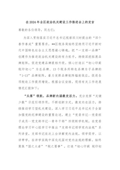 / 【七哥公文】2024年:在2024年全区政治机关建设工作推进会上的发言+更多免费公文+VX:QiGeGongWen2024