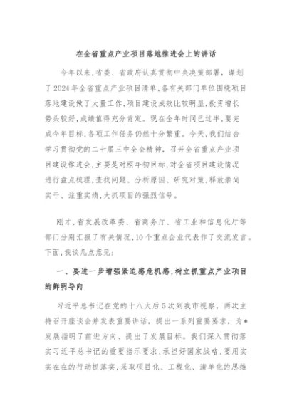 / 【七哥公文】2024年:在全省重点产业项目落地推进会上的讲话+更多免费公文+VX:QiGeGongWen2024