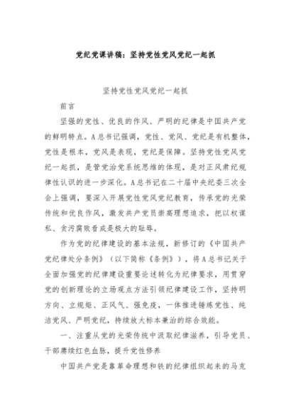 / 【七哥公文】2024年:党纪党课讲稿:坚持党性党风党纪一起抓+更多免费公文+VX:QiGeGongWen2024