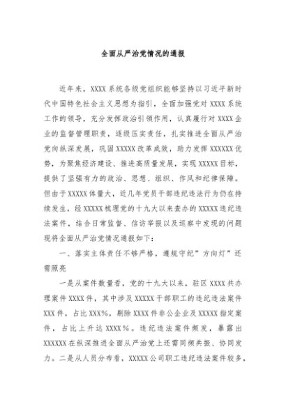 / 【七哥公文】2024年:全面从严治党情况的通报+更多免费公文+VX:QiGeGongWen2024