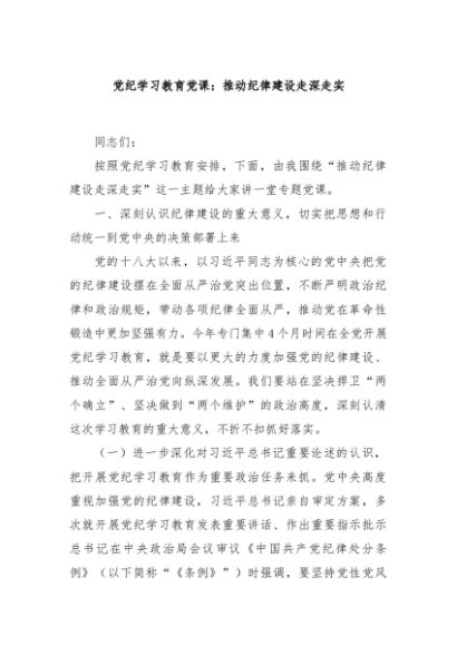 / 【七哥公文】2024年:党纪学习教育党课:推动纪律建设走深走实+更多免费公文+VX:QiGeGongWen2024