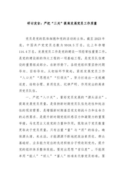 / 【七哥公文】2024年:研讨发言:严把“三关”提高发展党员工作质量+更多免费公文+VX:QiGeGongWen2024