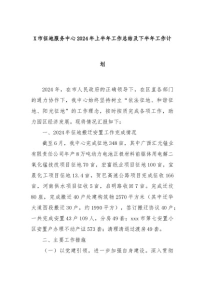 【七哥公文】2024年:X市征地服务中心2024年上半年工作总结及下半年工作计划+更多免费公文+VX:QiGeGongWen2024