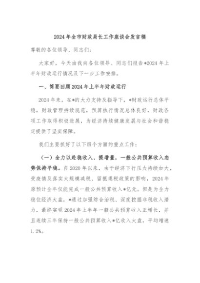 / 【七哥公文】2024年:2024年全市财政局长工作座谈会发言稿+更多免费公文+VX:QiGeGongWen2024