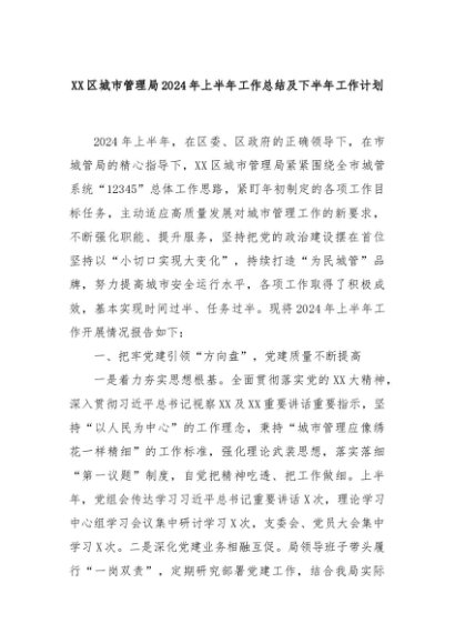 【七哥公文】2024年:XX区城市管理局2024年上半年工作总结及下半年工作计划+更多免费公文+VX:QiGeGongWen2024
