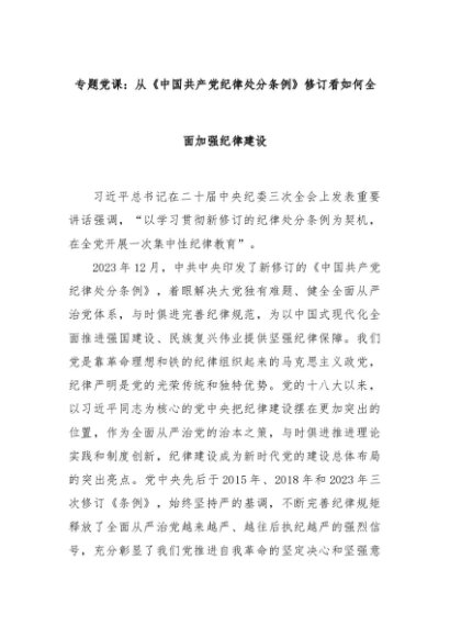 【七哥公文】2024年:专题党课:从《中国共 产 党纪律处分条例》修订看如何全面加强纪律建设+更多免费公文+VX:QiGeGongWen2024