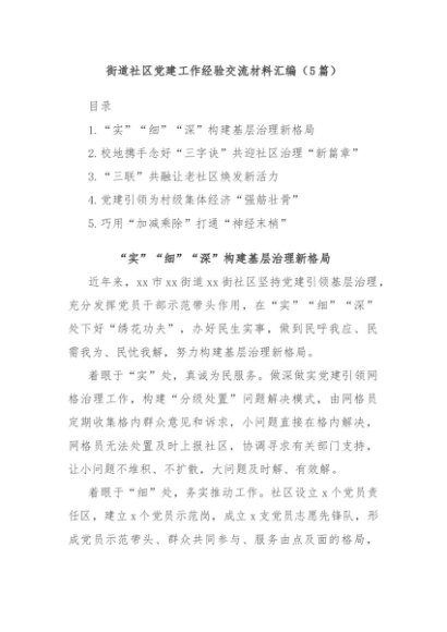 / 【七哥公文】2024年:(5篇)街道社区党建工作经验交流材料汇编+更多免费公文+VX:QiGeGongWen2024