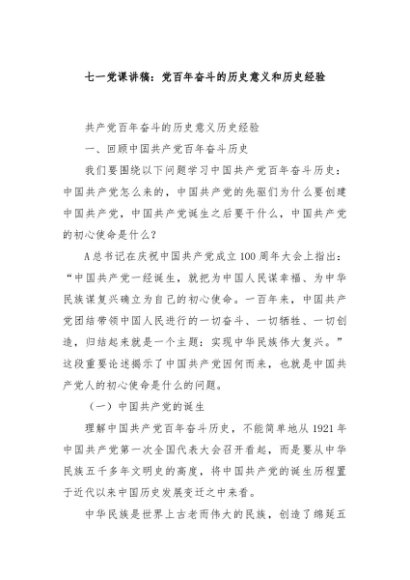 / 【七哥公文】2024年:七一党课讲稿:党百年奋斗的历史意义和历史经验+更多免费公文+VX:QiGeGongWen2024