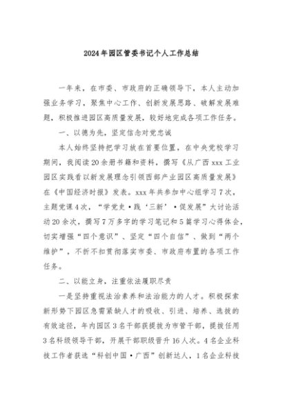 / 【七哥公文】2024年:2024年园区管委书记个人工作总结+更多免费公文+VX:QiGeGongWen2024