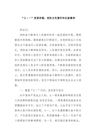 / 【七哥公文】2024年:“七·一”党课讲稿:党的为民情怀和红船精神+更多免费公文+VX:QiGeGongWen2024