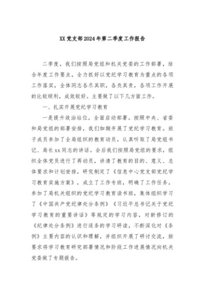 / 【七哥公文】2024年:XX党支部2024年第二季度工作报告+更多免费公文+VX:QiGeGongWen2024