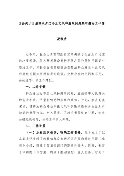 【七哥公文】2024年:X县关于开展群众身边不正之风和腐败问题集中整治工作情况报告+更多免费公文+VX:QiGeGongWen2024