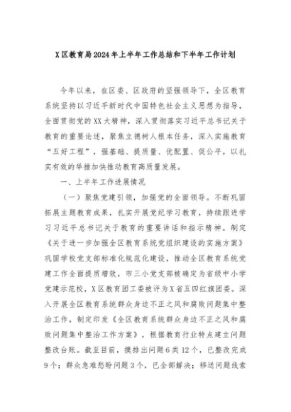 【七哥公文】2024年:X区教育局2024年上半年工作总结和下半年工作计划+更多免费公文+VX:QiGeGongWen2024