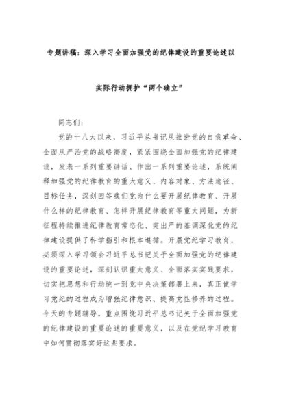 【七哥公文】2024年:专题讲稿:深入学习全面加强党的纪律建设的重要论述以实际行动拥护“两个确立”+更多免费公文+VX:QiGeGongWen2024
