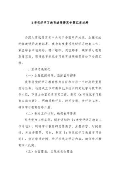 / 【七哥公文】2024年:X市党纪学习教育进展情况专题汇报材料+更多免费公文+VX:QiGeGongWen2024