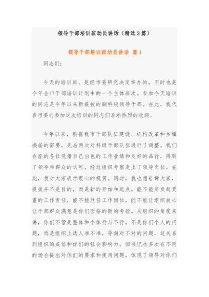 / 【七哥公文】2024年:领导干部培训班动员讲话(精选3篇)+更多免费公文+VX:QiGeGongWen2024