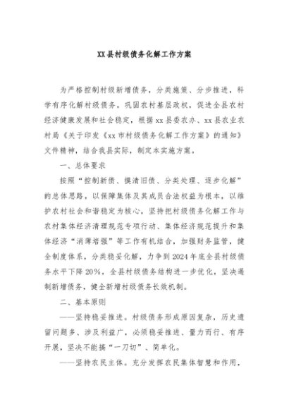【七哥公文】2024年:XX县村级债务化解工作方案+更多免费公文+VX:QiGeGongWen2024