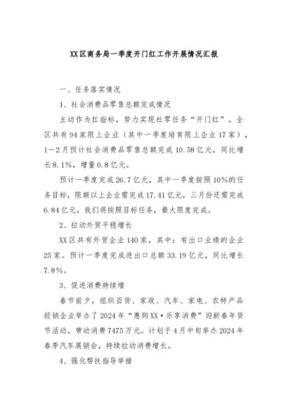/ 【七哥公文】2024年:XX区商务局一季度开门红工作开展情况汇报+更多免费公文+VX:QiGeGongWen2024