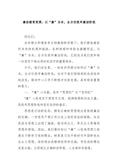 / 【七哥公文】2024年:廉洁教育党课:以“廉”为本,全方位筑牢廉洁防线+更多免费公文+VX:QiGeGongWen2024
