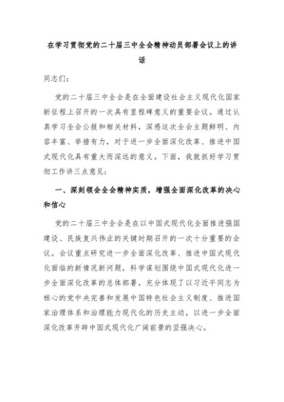【七哥公文】2024年:在学习贯彻党的二十届三中全会精神动员部署会议上的讲话+更多免费公文+VX:QiGeGongWen2024