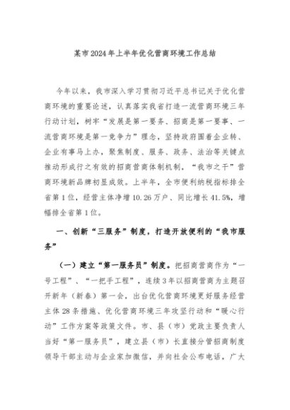 / 【七哥公文】2024年:某市2024年上半年优化营商环境工作总结+更多免费公文+VX:QiGeGongWen2024
