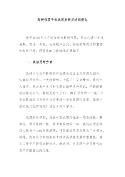 / 【七哥公文】2024年:科级领导干部试用期转正述职报告+更多免费公文+VX:QiGeGongWen2024