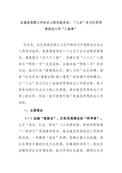 【七哥公文】2024年:在基层党建工作会议上的交流发言:“三点”发力打好思想政治工作“三套拳”+更多免费公文+VX:QiGeGongWen2024